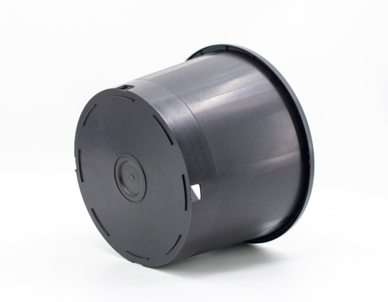 Plastic Nursery Pots round shape with drainage holes, injection molded, strong and reusable. 5 gallons of loose soil will fit in this pot when compacted. Actual liquid volume is approximately 4.23 gallon.
